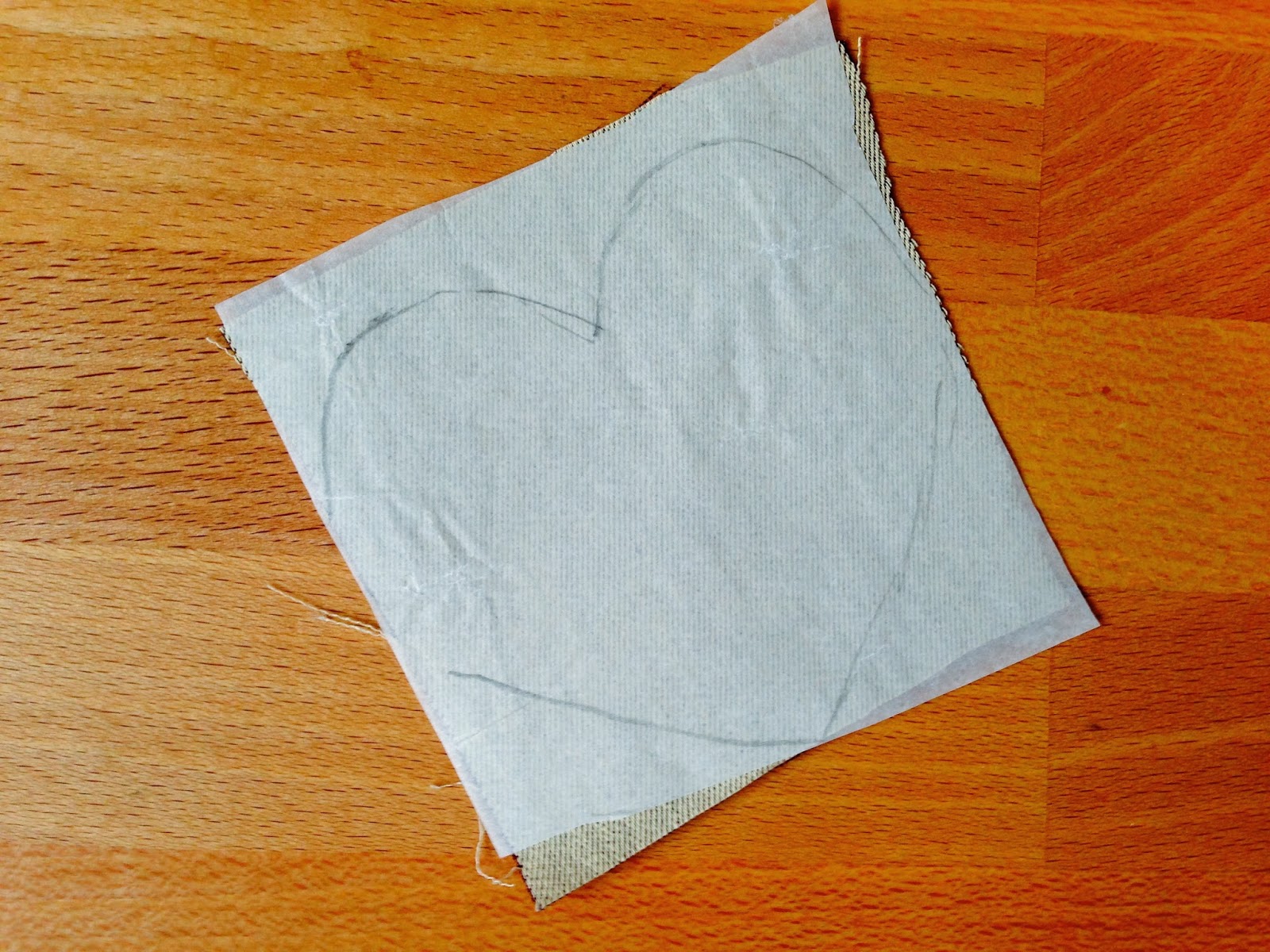 Next you can think about your decoration for the sticking body. I am appliquéing two hearts on this stocking to keep it simple. I always like to use Bondaweb when doing this, as it keeps the fabrics nice and flat, prevents fraying and means you don't have use pins to position and keep the fabric in place while sewing on the machine. If you have got any get some! Bondaweb feels like grease proof paper on one side and the other side it feels slightly rough, the rough side is the glue side that sticks your fabric together.